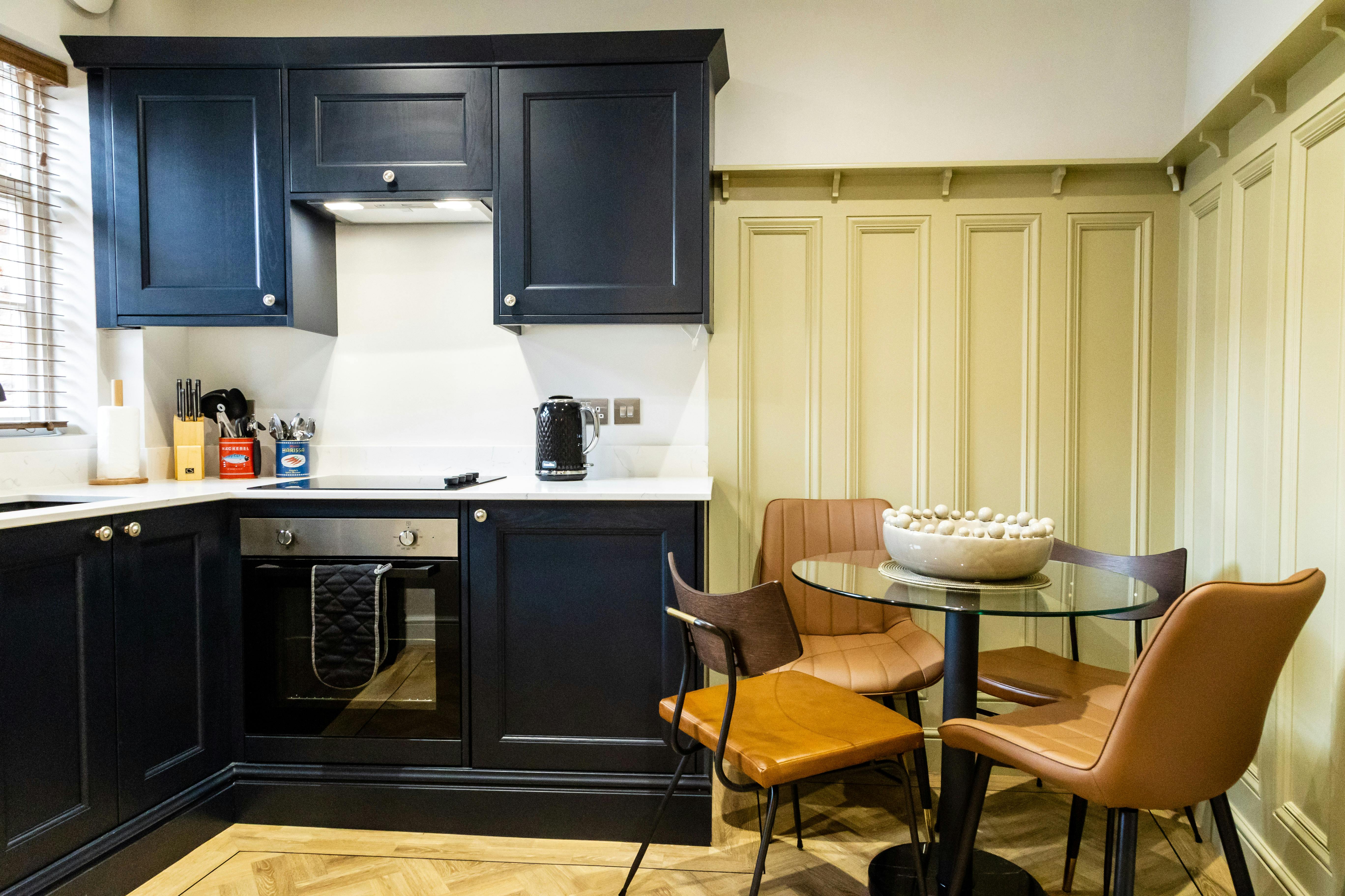 The living room has been designed for the comfort of our guests, featuring a plush sofa and 2 armchairs arranged around a stylish table. Combined with a smart HD TV, this provides the perfect setting for relaxation after a day exploring the city's rich history.