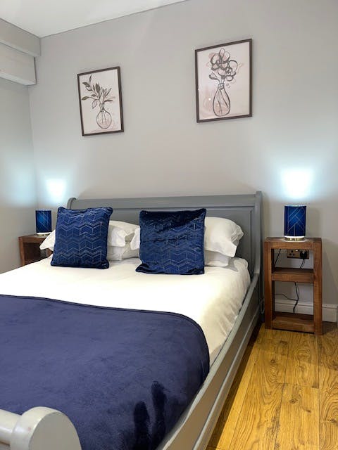 This apartment has a large double bedroom with king-size bed, private bathroom with large shower, kitchen area and double sofa bed in lounge. A travel cot and high chair can be added at an additional cost with prior notice and subject to availability.