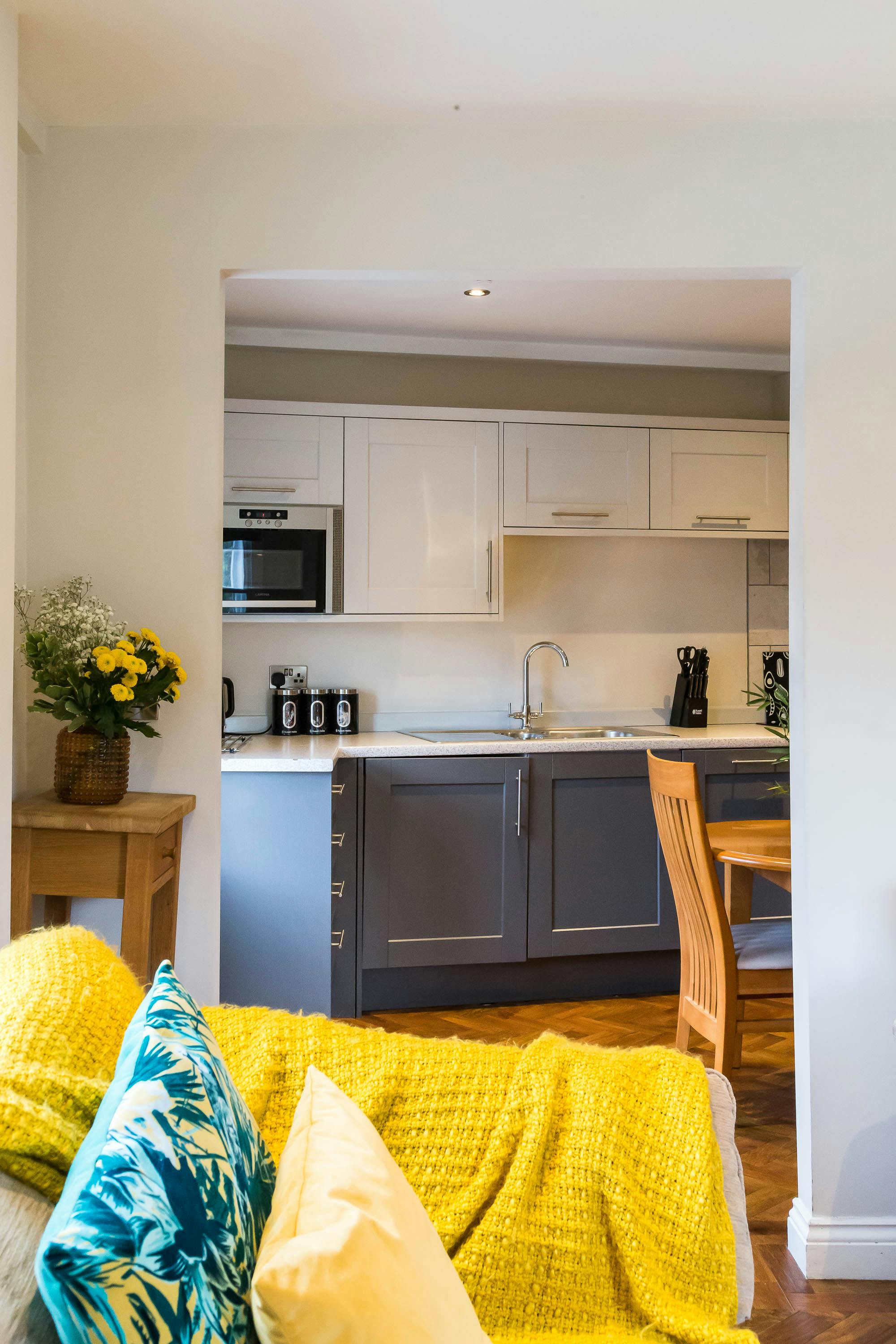 This apartment sleeps up to 6 people in total and consists of 2 king size bedrooms and 1 double sofa bed in the lounge. A travel cot and high chair can be added at an additional cost with prior notice and subject to availability. This modern apartment features an open plan kitchen/dining area, perfect for self-catering. This leads into the family lounge with comfortable seating and original features.